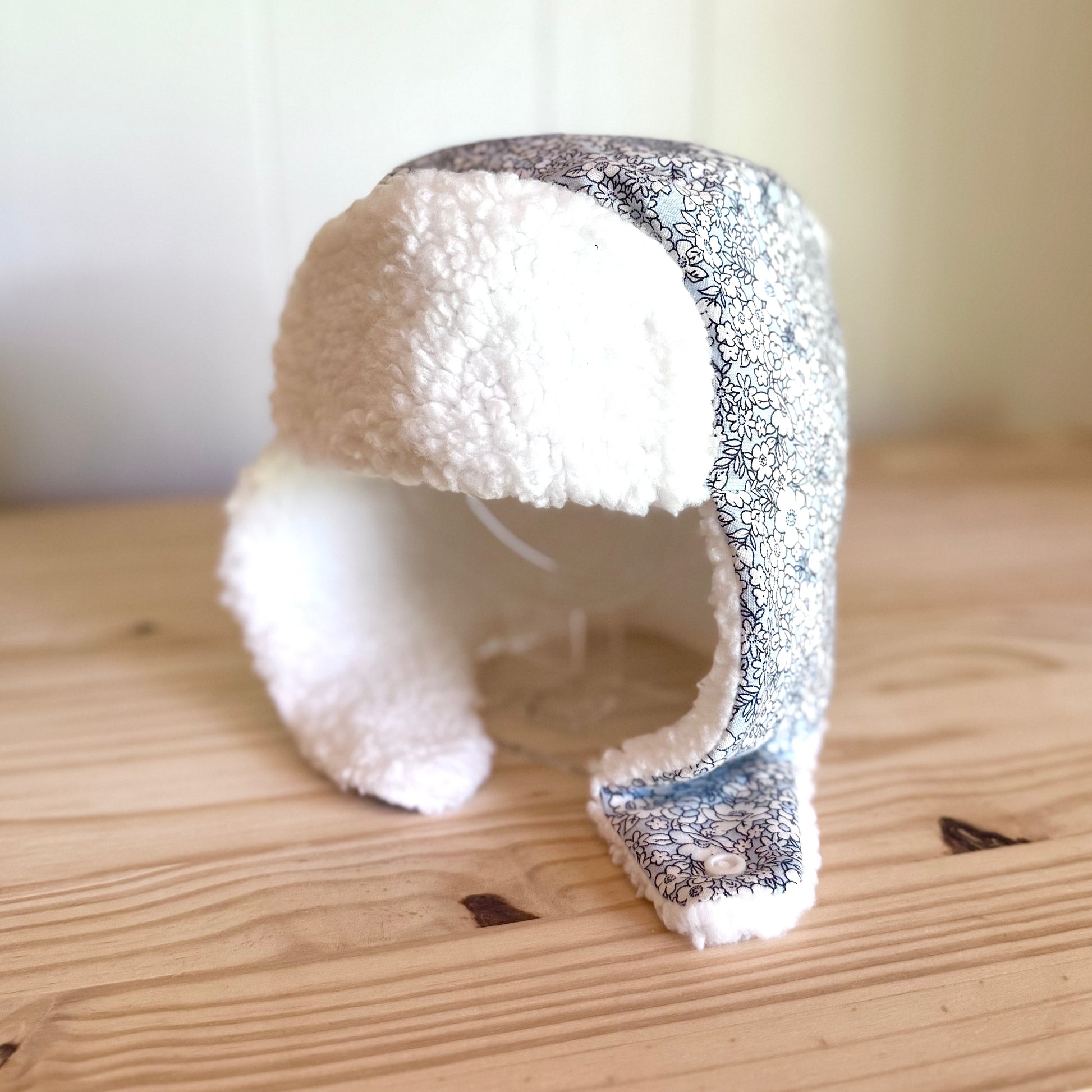 Blue & White Floral & White - Trapper Hat (Size 4-7 Years)