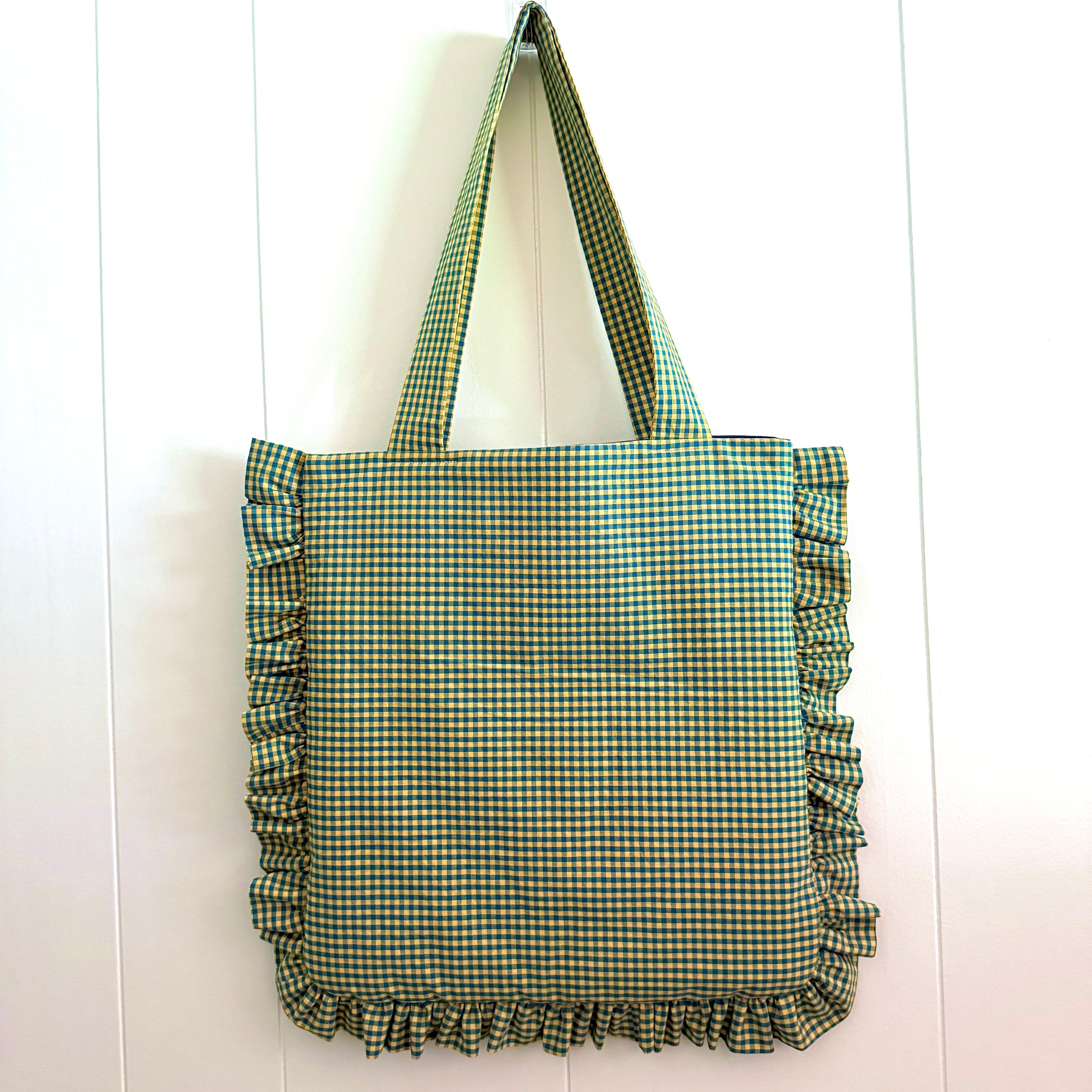The Granny Pillow Tote is roomy enough for library hauls, laptops, or your everyday essentials, and playful enough to make any outfit more fun. Measuring 12 x 13 inches, each tote is one-of-a-kind and often made from vintage/upcycled fabrics - This tote was once a button-up shirt!
