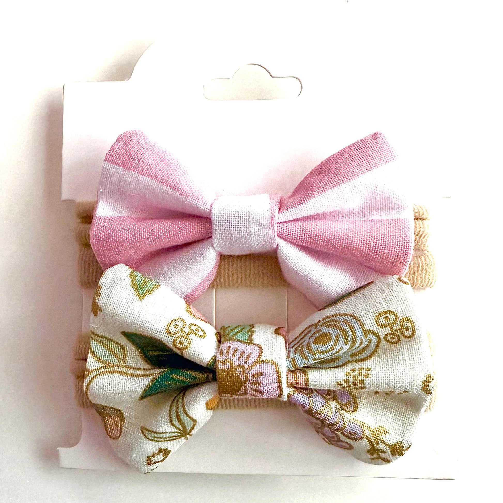 White & Gold Rifle Paper Floral #2 - Headband Bow Set